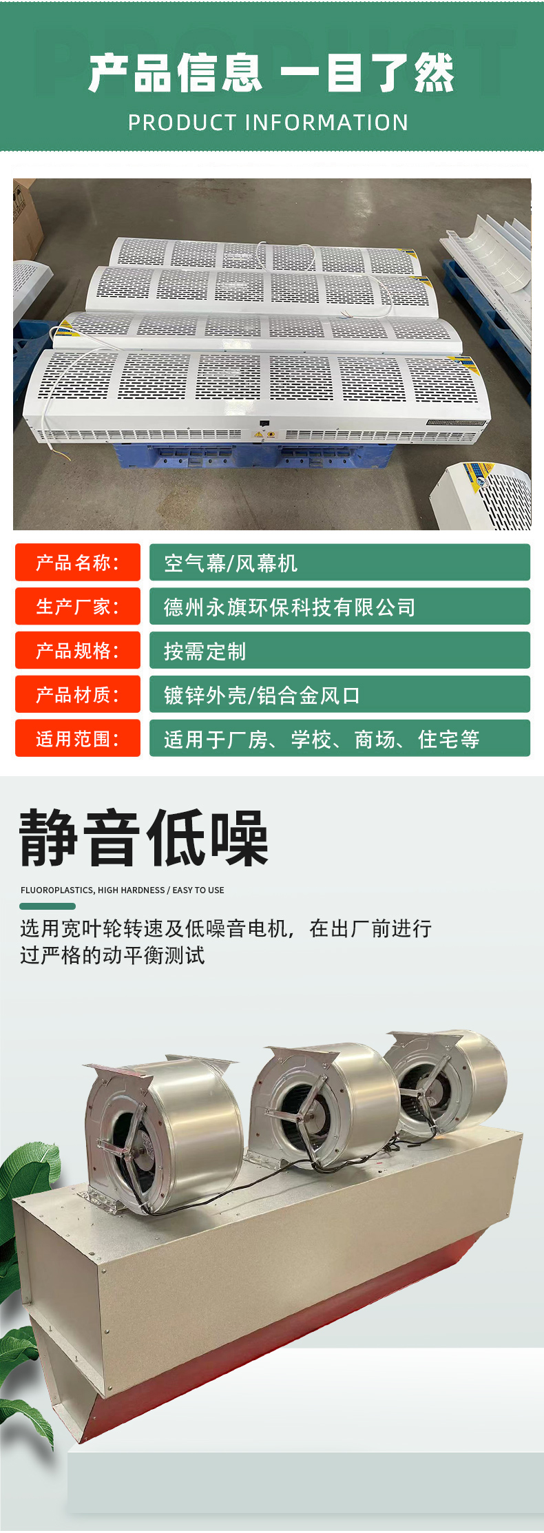 电加热空气幕 低噪音风幕型风幕机 低噪音设计